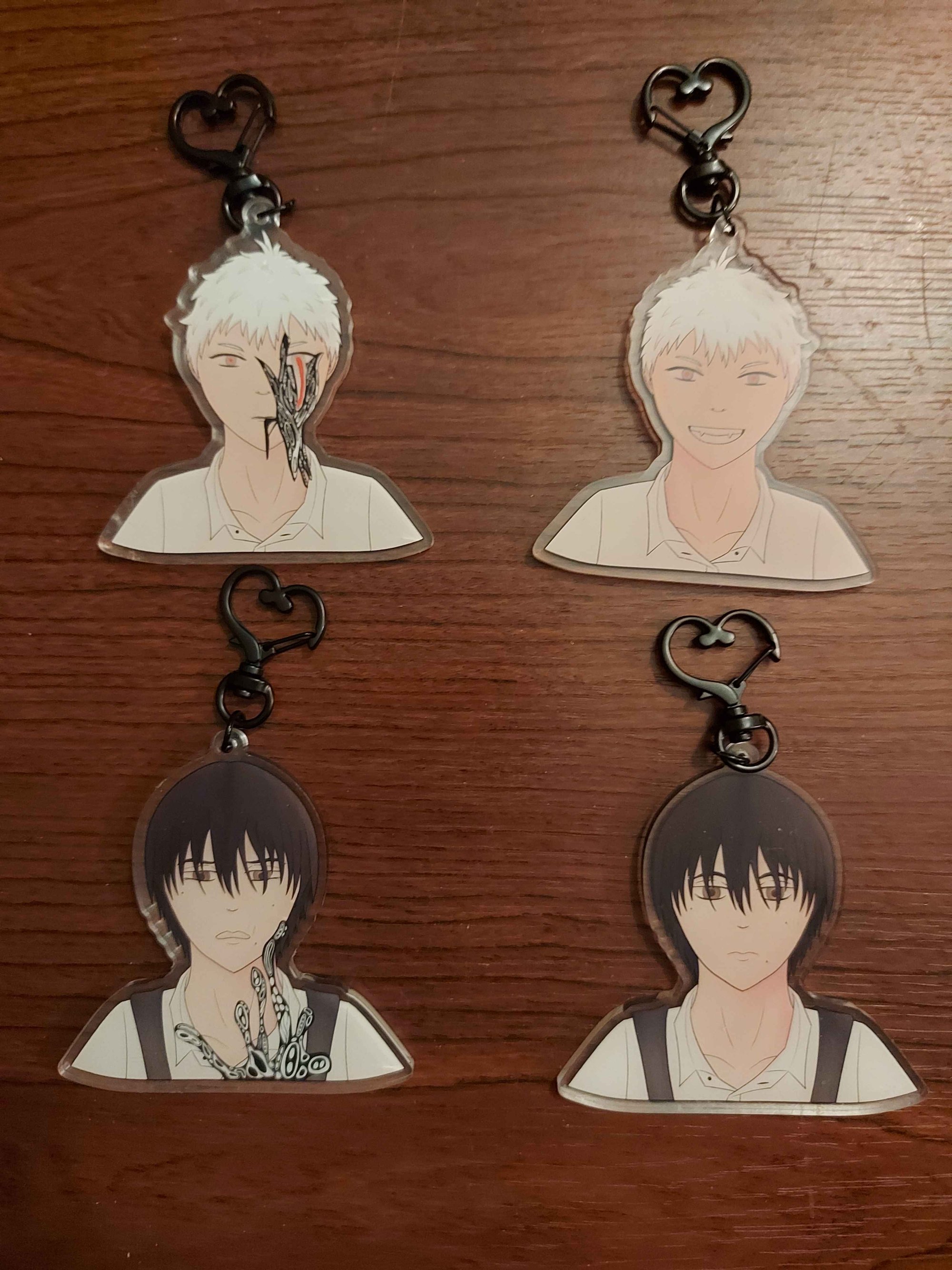 Double sided keychains featuring Hikaru and Yoshiki from The Summer Hikaru Died. One side is their usual expression, while the other is...
